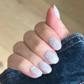 Find your best fit. Push back cuticles and gently buff nails. Wipe with prep paid. Apply glue to the press-on nail and the natural nail. Slide the press-on nail onto the natural nail and hold for 30 seconds. Repeat with remaining nails.