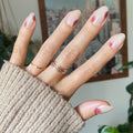 Find your best fit. Push back cuticles and gently buff nails. Wipe with prep paid. Apply glue to the press-on nail and the natural nail. Slide the press-on nail onto the natural nail and hold for 30 seconds. Repeat with remaining nails.