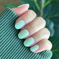 A soft minty green gradient mani with subtle shimmer in an extra short round shape.