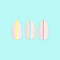 Find your best fit. Push back cuticles and gently buff nails. Wipe with prep paid. Apply glue to the press-on nail and the natural nail. Slide the press-on nail onto the natural nail and hold for 30 seconds. Repeat with remaining nails.