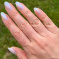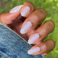 Find your best fit. Push back cuticles and gently buff nails. Wipe with prep paid. Apply glue to the press-on nail and the natural nail. Slide the press-on nail onto the natural nail and hold for 30 seconds. Repeat with remaining nails.
