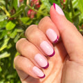 Find your best fit. Push back cuticles and gently buff nails. Wipe with prep paid. Apply glue to the press-on nail and the natural nail. Slide the press-on nail onto the natural nail and hold for 30 seconds. Repeat with remaining nails.