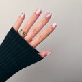Find your best fit. Push back cuticles and gently buff nails. Wipe with prep paid. Apply glue to the press-on nail and the natural nail. Slide the press-on nail onto the natural nail and hold for 30 seconds. Repeat with remaining nails.